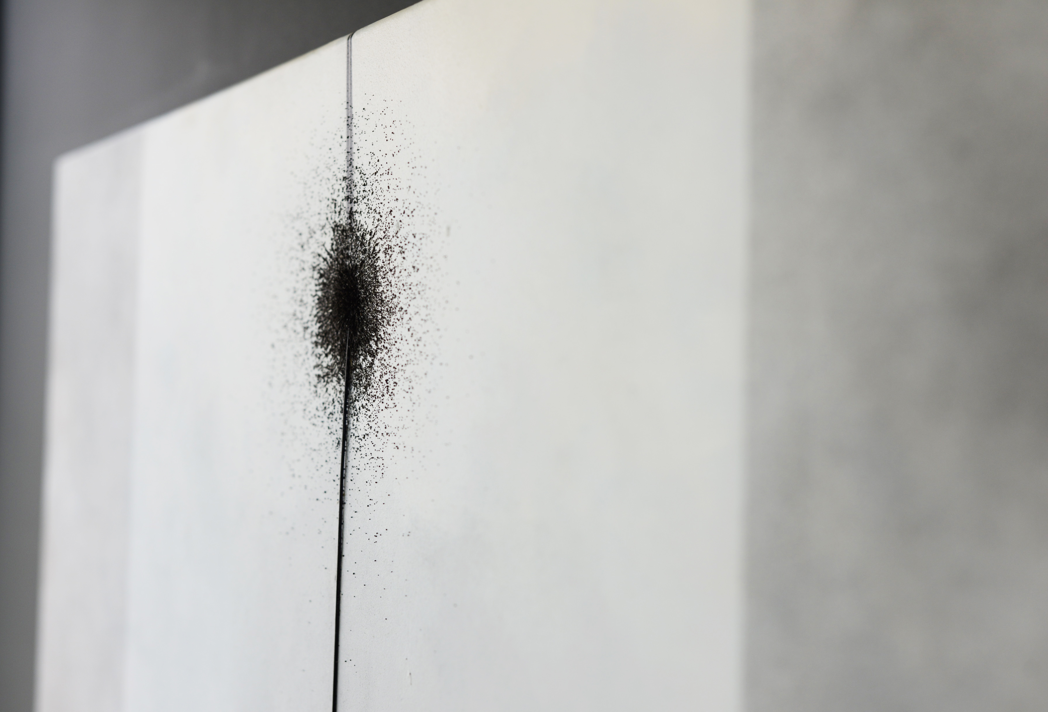 The result is a body of work that moves between drawing and painting, concept and sensation, asking how speculative space might be translated into material form.