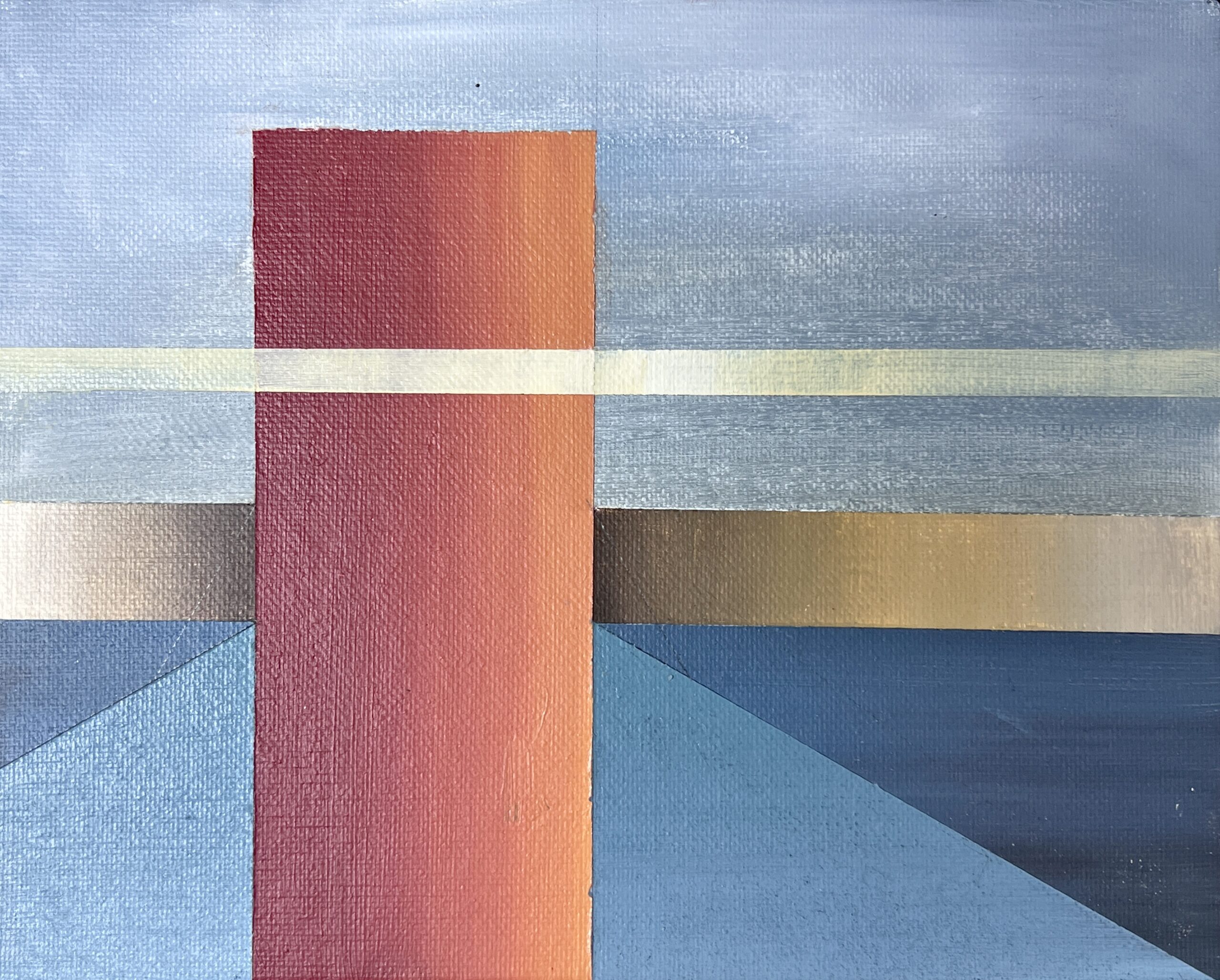 Drawing from architecture, shadow lines, and the movement of daylight across surfaces, the works trace moments of emergence, clarity, fading, and return. Geometric forms appear and soften, planes recede, and transitions between brightness and obscurity become central to the image.